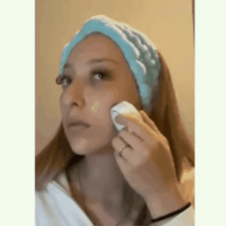Nuestro masajeador GlowLift estimula tus músculos faciales y mejorar la elasticidad de tu piel.